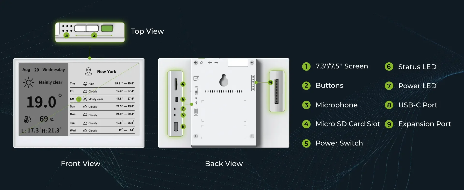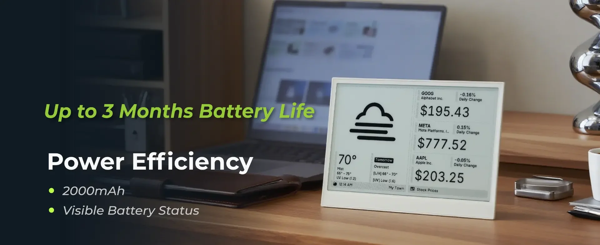 Desktop Personal Assistants:Show colorful pictures or photos, track calendars, notifications, weather, or news as a stylish, energy-efficient alternative to tablets.