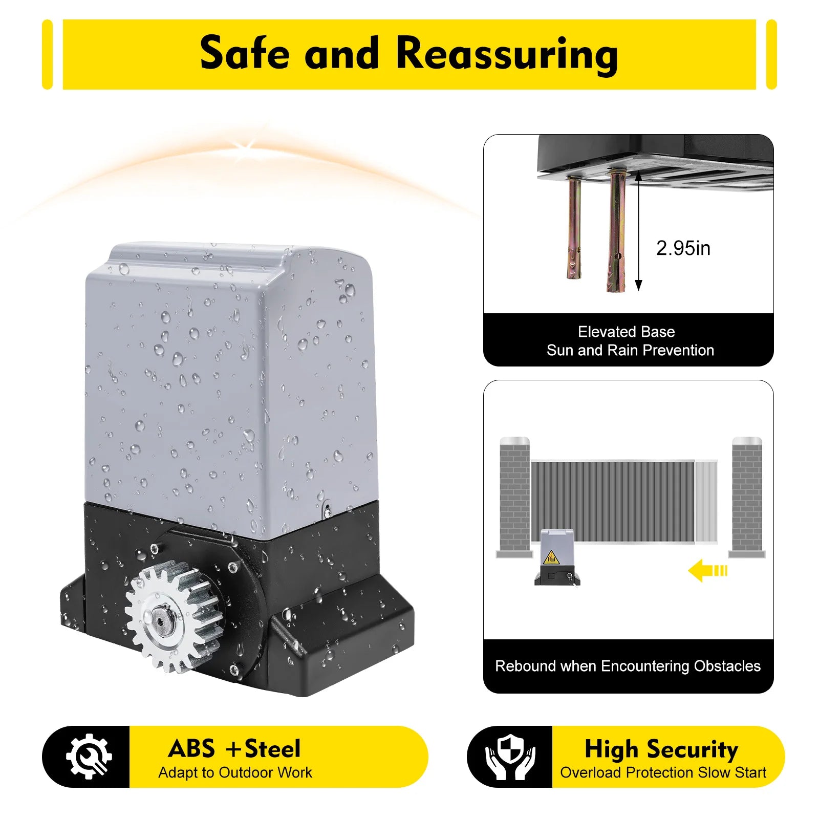 - Three power options—370W, 550W, and 750W—match performance to your gate, handling up to 1,800 kg (3,968 lbs) with strong starting torque and compatibility with stainless steel, iron, bronze, and solid wood doors.